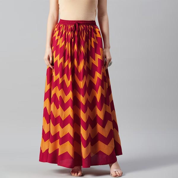 0 review(s) for "Women Red & Mustard Yellow Chevron Print Flared Maxi Skirt"